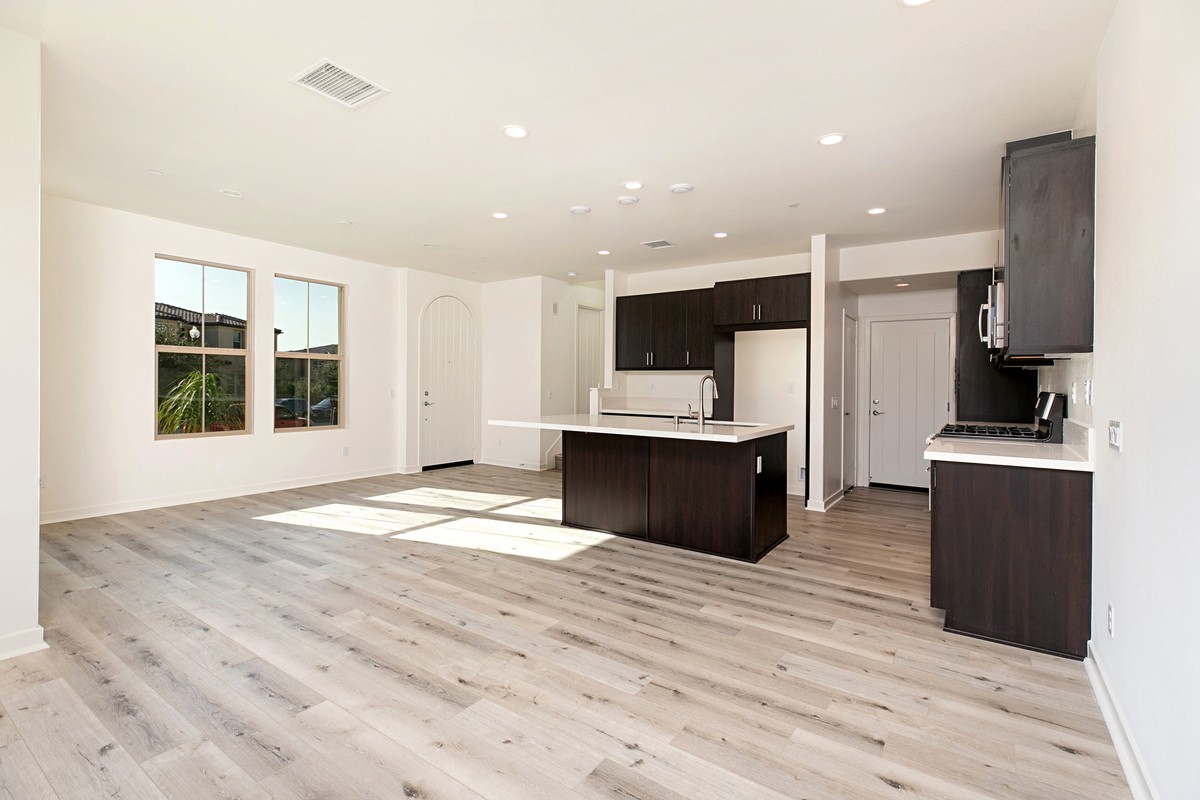 Highly upgraded Baker Ranch Shea home in "The Rowe". This is an end unit with an oversized patio perfect for enjoying a bbq with friends. Close walk away from the gorgeous Baker Ranch "Swim Club". Feel spoiled with this amazing open floor plan dressed up with the finest upgrades such as distressed wood flooring, quartz countertops, stainless appliances, rich espresso wood cabinets and so much more. Oversized family room is open with the kitchen and leads to the patio perfect for indoor/outdoor living and entertaining. Upstairs are three generous sized rooms with soaring ceilings, wood flooring and an upstairs laundry room. Two car attached garage and many energy efficient features such as a whole house fan. Washer, dryer and refrigerator included. Come check out Baker Ranch and this fabulous location walking distance to amenities, trails, shops and more. This is a lifestyle game changer!