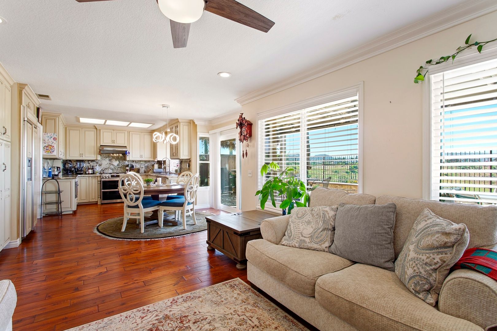AVAILABLE NOW! This expansive five-bedroom home is on a quiet street in the desirable Rancho Niguel community of Laguna Niguel. The home features soaring vaulted ceilings and an open-concept floor plan that emphasizes the panoramic views of Saddleback Mountain and the surrounding hills. On the main level, a remodeled kitchen with premium cabinetry and granite countertops flows into the family room and dining areas, while a separate formal living room provides additional space for entertaining. There is a main level bedroom can be set up for a home office. The second floor houses the spacious primary suite, positioned to take full advantage of the views, along with three additional bedrooms that offer versatility for a large family. Outside, the private backyard is designed for low-maintenance living with a built-in BBQ island, ideal for enjoying the coastal breezes. Residents also enjoy a three-car garage and exclusive access to the resort-style amenities at The Club at Rancho Niguel, including multiple pools, a spa, fitness center, and courts for tennis, pickleball, and sand volleyball.
