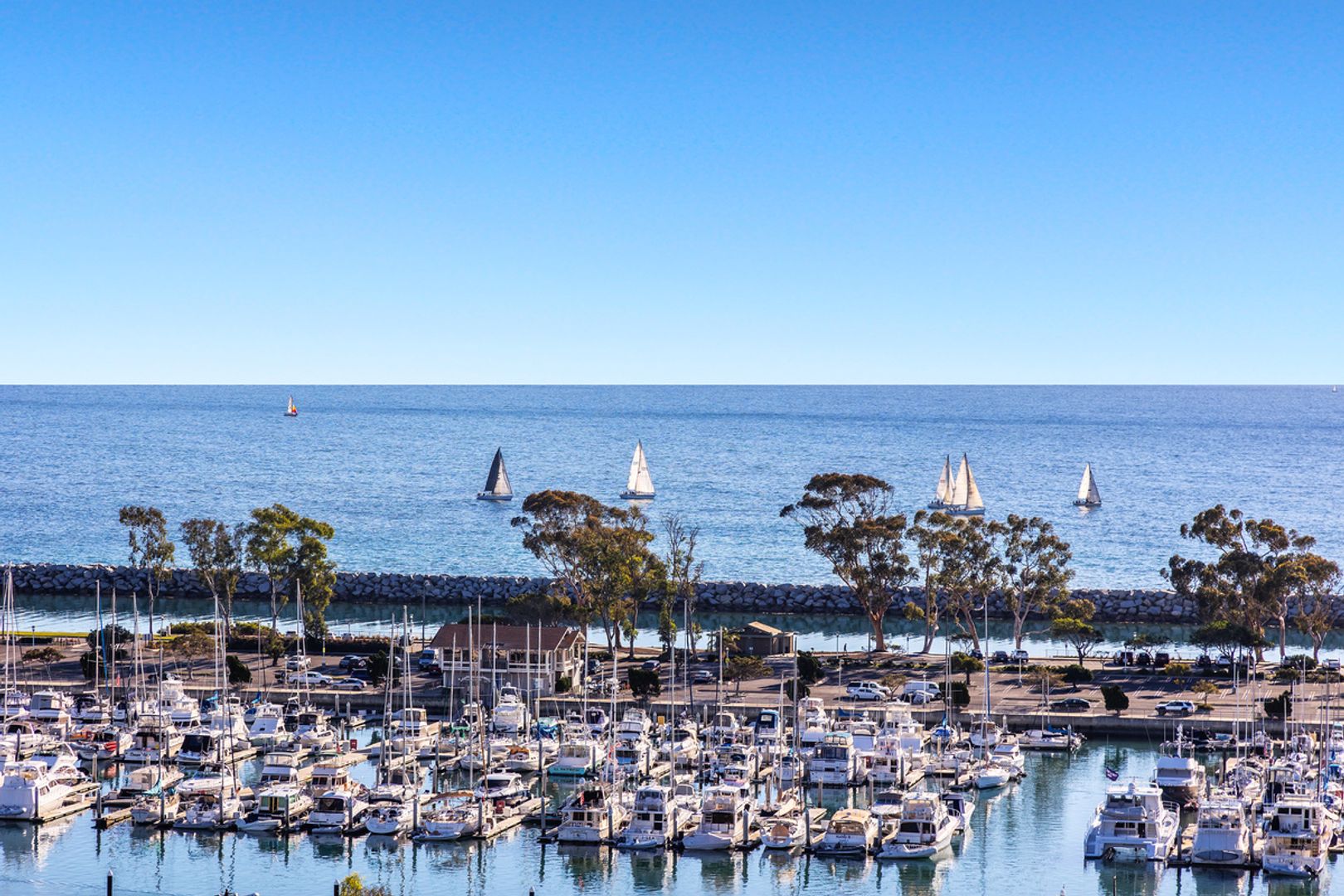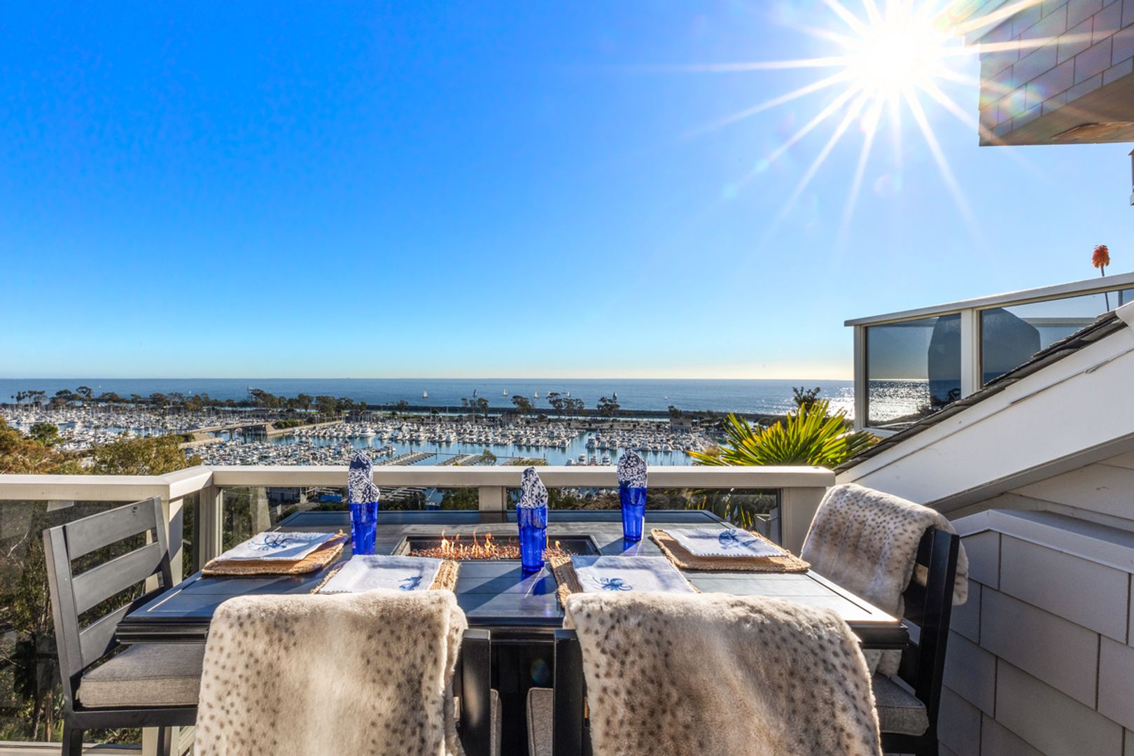 Available until December 10th and then again March 18th! Set high above Dana Point Harbor, this rare residence offers an unparalleled lifestyle in the exclusive Admiralty community. With breathtaking panoramic views of the ocean, harbor, and whitewater waves, this beautifully upgraded 2-bedroom, 3-bathroom home spans 2,765 square feet, with an optional third sleeping area or den. Upon entry through double doors, the main floor opens to a wall of windows and doors showcasing sweeping ocean vistas, framed by a striking stacked stone fireplace that reaches up to vaulted, beamed ceilings. The open layout connects the living area to a chef’s kitchen, equipped with top-tier appliances like a Thermador double oven and cooktop, plus Subzero fridge and freezer—ideal for culinary pursuits. An oceanfront terrace extends from the kitchen and living area, complete with a firepit for outdoor dining and taking in the cool coastal breeze. The main level also hosts a secondary suite with a walk-in closet and a luxurious bathroom featuring a dual-sink vanity and walk-in shower. Descending to the lower level, you'll find the primary suite, a private sanctuary with its own terrace and sweeping harbor views. This spacious retreat includes a dual-sided fireplace, perfect for enjoying from both the bed and the jacuzzi tub. The ensuite bathroom boasts dual vanities, an oversized shower with a dressing area, a jacuzzi tub, and a generous walk-in closet with a secure safe. A private sauna adds an extra layer of indulgence. The lower level also includes a flexible den area, ideal as a third bedroom for guests or additional lounging space. This property is only moments away from downtown Dana Point’s shops, dining, harbor, scenic coastal trails, and world-renowned beaches. Available for both short and long-term rental, this home epitomizes Southern California’s luxurious coastal lifestyle. Rates vary based on season. Summer season (June, July, August): $16,500-$18,500/month.